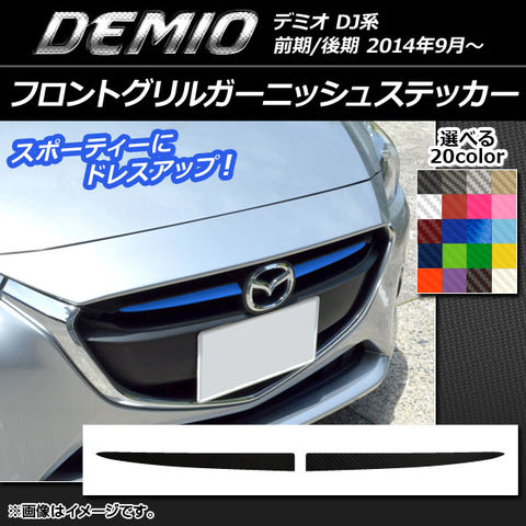 フロントグリルガーニッシュステッカー カーボン調 マツダ デミオ DJ系 前期/後期 選べる20カラー 入数:1セット(2枚) AP-CF1316