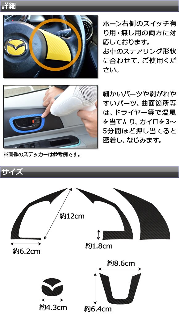 ステアリングステッカーセット カーボン調 タイプB マツダ CX-5 KE系、アクセラ BM系/BY系、アテンザ GJ系 選べる20カラー AP-CF440