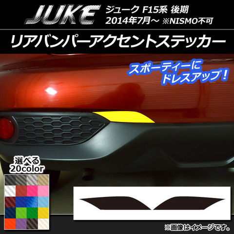 リアバンパーアクセントステッカー カーボン調 ニッサン ジューク F15系 後期 NISMO不可 選べる20カラー 入数:1セット(2枚) AP-CF1806
