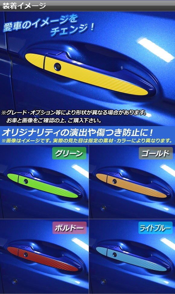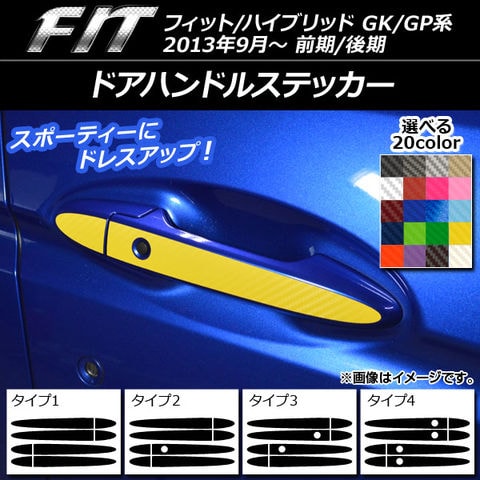 ドアハンドルステッカー カーボン調 ホンダ フィット/ハイブリッド GK系/GP系 選べる20カラー 選べる4バリエーション 入数:1セット(8枚) AP-CF2383