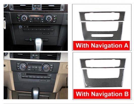 適用: BMW E90 カーボンファイバー ストリップ エアコン CD パネル 装飾 カバー トリム オート インテリア アクセサリー 3D ステッカー ナビゲーション A~ナビゲーションなしB AL-EE-8582 AL