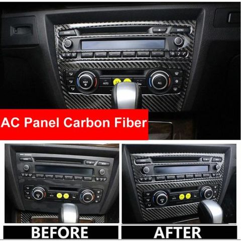 適用: BMW E90 カーボンファイバー ストリップ エアコン CD パネル 装飾 カバー トリム オート インテリア アクセサリー 3D ステッカー
