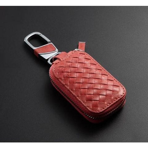 カウレザー 組み紐 オート キー チェーン キーリング リング ケース ホルダー カバー バッグ レッド