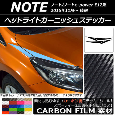 ヘッドライトガーニッシュステッカー カーボン調 ニッサン ノート/ノートe-power E12系 後期 2016年11月~ 選べる20カラー 入数:1セット(4枚) AP-CF3259