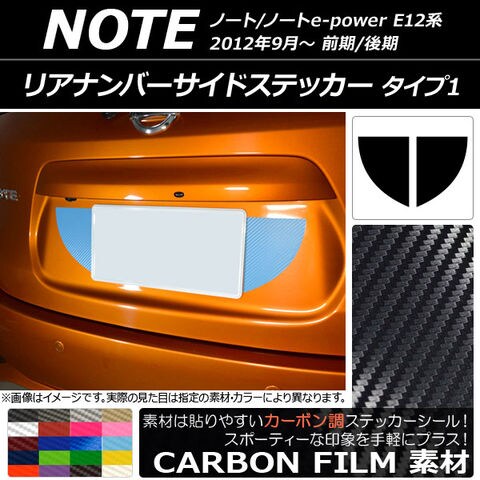 リアナンバーサイドステッカー カーボン調 タイプ1 ニッサン ノート/ノートe-power E12系 2012年09月~ 選べる20カラー 入数:1セット(2枚) AP-CF3305