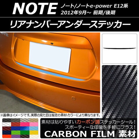 リアナンバーアンダーステッカー カーボン調 ニッサン ノート/ノートe-power E12系 前期/後期 2012年09月~ 選べる20カラー AP-CF3308