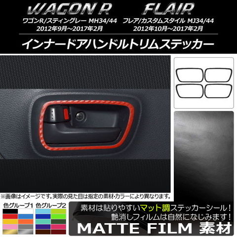 インナードアハンドルトリムステッカー スズキ/マツダ ワゴンR/スティングレー,フレア/カスタムスタイル マット調 色グループ1 入数:1セット(4枚) AP-CFMT1001