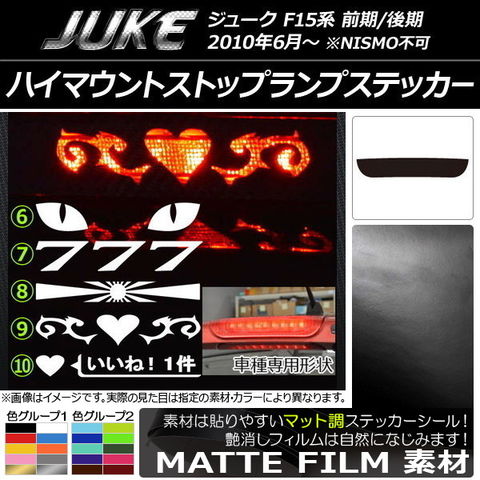 ハイマウントストップランプステッカー マット調 ニッサン ジューク F15系 前期/後期 NISMO不可 色グループ1 タイプグループ2 AP-CFMT1893