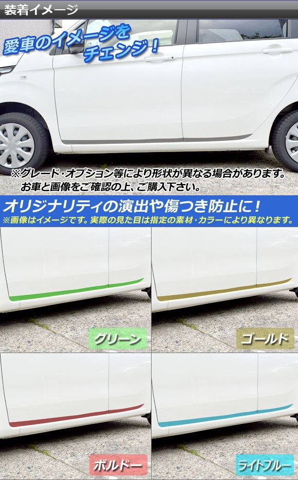 サイドドアモール サイドモール ドアモール サイドドア サイド ドア モール サイドドアガーニッシュ サイドガーニッシュ ドアガーニッシュ アンダーモール アンダー 下側 ライン 外装 エクステリア ガーニッシュ ドレスアップ ステッカー テープ シール デカール シート フィルム ラベル 装飾 緑 紫 桃色 茶 水色 紺 透明 カー 車 自動車 マット 無地 艶無し ツヤ無し つや無し 艶消し ツヤ消し つや消し