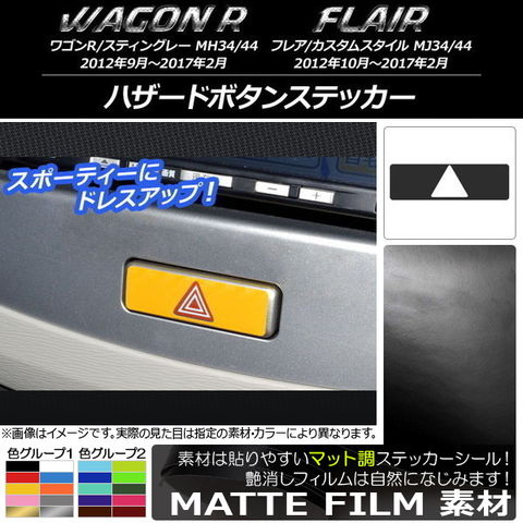ハザードボタンステッカー スズキ/マツダ ワゴンR/スティングレー,フレア/カスタムスタイル マット調 色グループ2 AP-CFMT1018