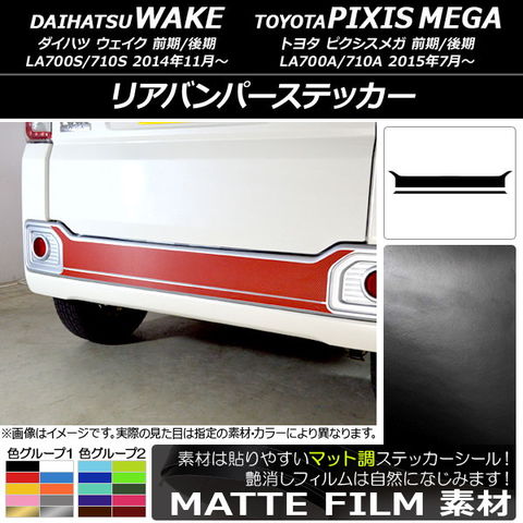 リアバンパーステッカー ダイハツ/トヨタ ウェイク/ピクシスメガ LA700系 2014年11月~ マット調 色グループ1 入数:1セット(2枚) AP-CFMT3010