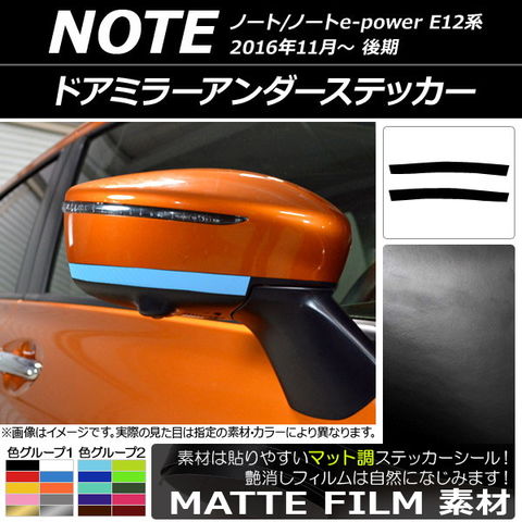 ドアミラーアンダーステッカー マット調 ニッサン ノート/ノートe-power E12系 後期 2016年11月~ 色グループ1 入数:1セット(2枚) AP-CFMT3280