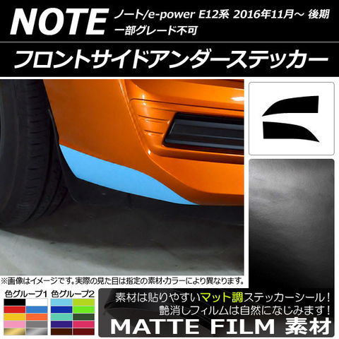 フロントサイドアンダーステッカー マット調 ニッサン ノート/ノートe-power E12系 後期 2016年11月~ 色グループ2 入数:1セット(2枚) AP-CFMT3271