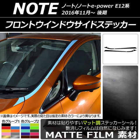 フロントウインドウサイドステッカー ニッサン ノート/ノートe-power E12系 後期 2016年11月~ マット調 色グループ2 AP-CFMT3287 入数:1セット(6枚)