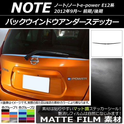 バックウインドウアンダーステッカー ニッサン ノート/ノートe-power E12系 前期/後期 2012年09月~ マット調 色グループ1 AP-CFMT3302