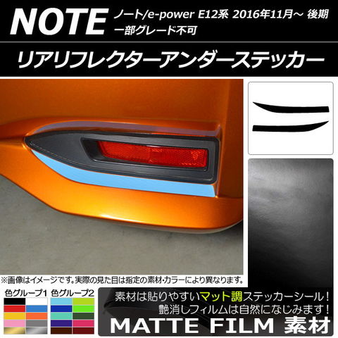 リアリフレクターアンダーステッカー マット調 ニッサン ノート/ノートe-power E12系 後期 2016年11月~ 色グループ2 入数:1セット(2枚) AP-CFMT3320