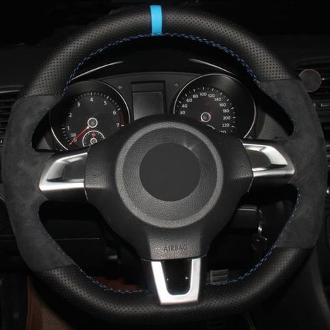 ステアリングホイールカバー 編み上げタイプ ブラックスウェード レザー 適用: フォルクスワーゲン ゴルフ 6 GTI MK6 VW ポロ GTI シロッコ R パサート CC レッド マーカー 糸・ブルー マーカー 糸 AL-FF-0531 AL