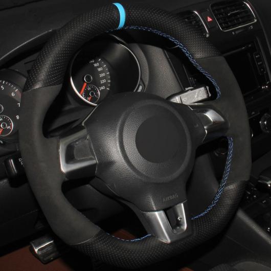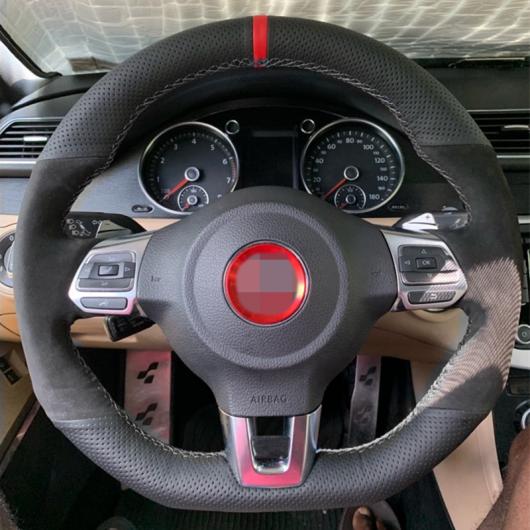 ステアリングホイールカバー 編み上げタイプ スウェード レザー 適用: フォルクスワーゲン ゴルフ 6 GTI MK6 VW パサート CC R-LINE 2010 ポロ GTI シロッコ レッド マーカー 糸・ブルー マーカー 糸 AL-FF-0612 AL