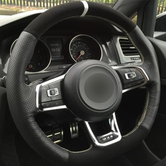 ステアリングホイールカバー 編み上げタイプ ブラック レザー スウェード 適用: フォルクスワーゲン ゴルフ 7 GTI ゴルフ R MK7 VW ポロ GTI ホワイト マーカー 糸 AL-FF-0694 AL
