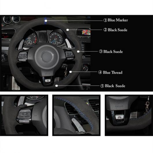 ステアリングホイールカバー 編み上げタイプ ブラックスウェード 適用: フォルクスワーゲン ゴルフ 6 GTI MK6 VW ポロ GTI シロッコ R パサート CC R-LINE レッド マーカー 糸・ブルー マーカー 糸 AL-FF-0700 AL