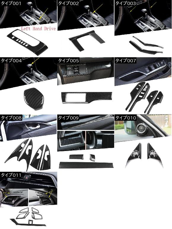 カーボンファイバー インテリア モールディング インナー ドア ハンドル ボウル パネル カバー トリム 適用: ホンダ シビック 10代目 2016 2017 LHD タイプ007~タイプ011 AL-FF-1819