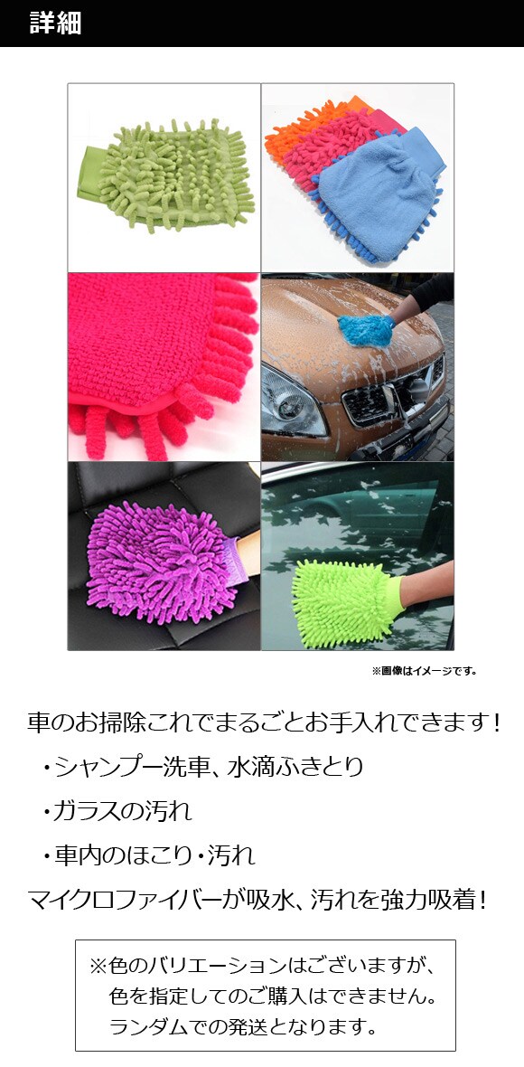 洗車グローブ Sサイズ 約20×15cm ランダムカラー 柔らかマイクロファイバー! グローブタイプで楽々洗える♪ AP-UJ0207-S