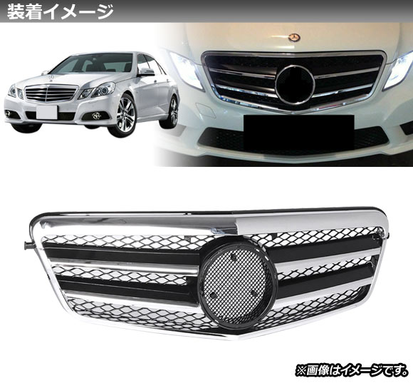 フロントグリルカバー メルセデス・ベンツ Eクラス W212 E250/E300/E350/E500/E550/E63AMG/前期 2009年~2013年 シルバー×ブラック ABS製 AP-FG137-SIBK