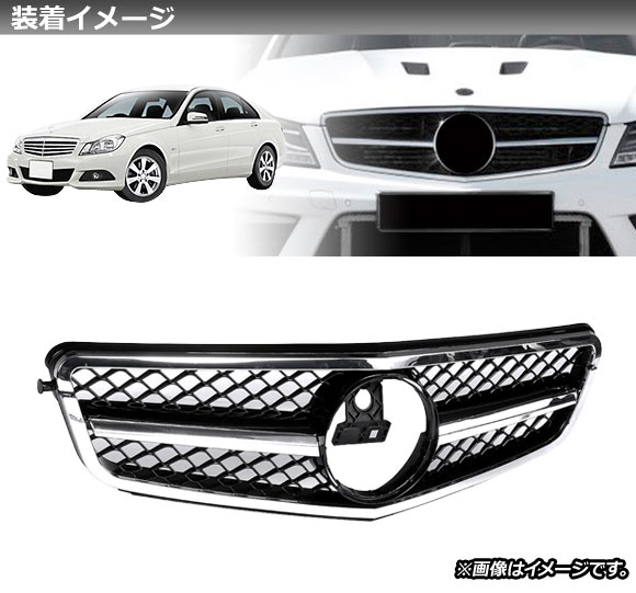 フロントグリルカバー メルセデス・ベンツ Cクラス W204 C180/C200/C300/C350 2008年~2014年 シルバー ABS製 AP-FG138-SI