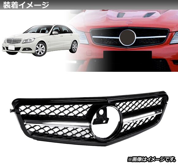 フロントグリルカバー メルセデス・ベンツ Cクラス W204 C180/C200/C300/C350 2008年~2014年 ブラック×シルバー ABS製 AP-FG138-BKSI