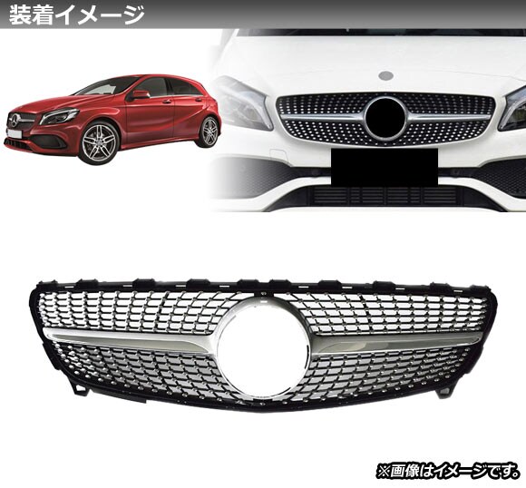 フロントグリルカバー メルセデス・ベンツ Aクラス W176 A180/A250/後期 2015年~2018年 シルバー ABS製 AP-FG142-SI