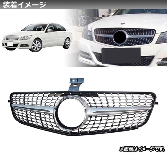 フロントグリルカバー メルセデス・ベンツ Cクラス W204 C180/C200/C300/C250/C350 2007年~2014年 シルバー ABS製 AP-FG152-SI