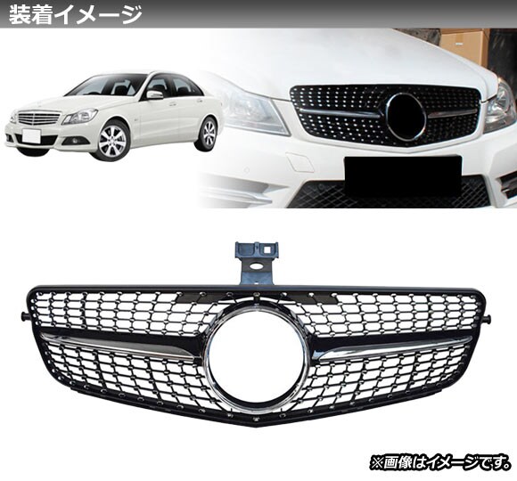 フロントグリルカバー メルセデス・ベンツ Cクラス W204 C180/C200/C300/C250/C350 2007年~2014年 ブラック ABS製 AP-FG152-BK