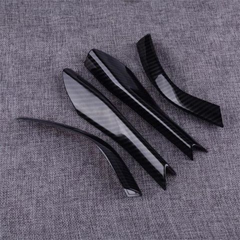 4ピース カーボンファイバー スタイル ブラック バックミラー ミラー モールディング ストリップ トリム カバー ABS 適用: フォード マスタング 2015 2016 2017 AL-FF-6405 AL