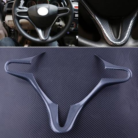 ブラック カーボンファイバー スタイル インナー ステアリング ホイール カバー トリム フレーム 適用: ホンダ フィット 2008 2009 2010 2011 2012 2013 AL-FF-6821 AL