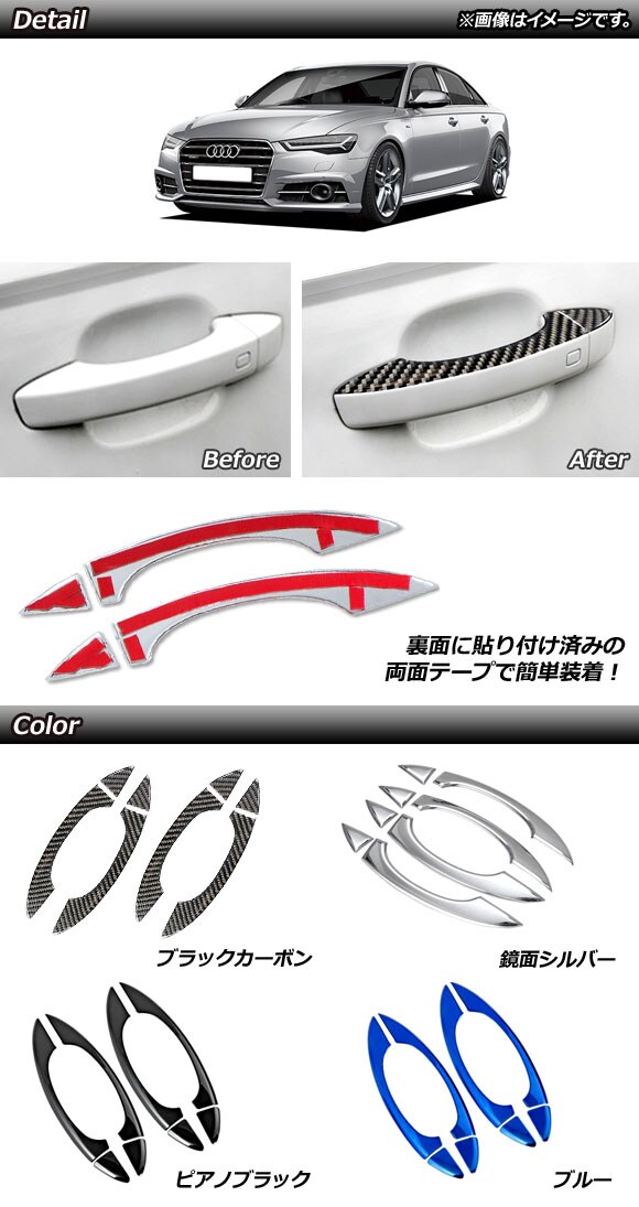 ドアハンドルカバー アウディ A6 C7 2011年08月~2019年03月 ブラックカーボン ハーフタイプ 入数:1セット(8個) AP-XT488-BKC
