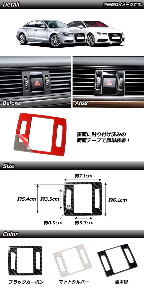 ハザードスイッチカバー アウディ A7スポーツバック 4GC 2011年05月~2018年09月 黒木目 ステンレス製