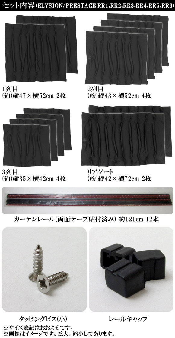 車種別専用カーテンセット ホンダ エリシオン/プレステージ RR1,RR2,RR3,RR4,RR5,RR6 2004年~2013年 入数:1セット(12ピース) AP-CH02