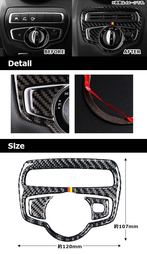 ヘッドライトスイッチフレームカバー メルセデス・ベンツ Cクラス W205 2014年07月~ ブラック Bタイプ カーボンファイバー製 入数:1セット(3個)