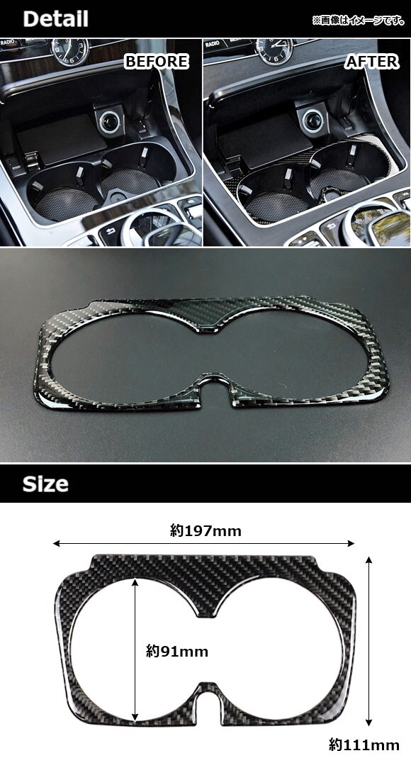 カップホルダーカバー メルセデス・ベンツ Cクラス W205 C180 C200 2017年~ ブラック Aタイプ カーボンファイバー製 AP-IT573-A