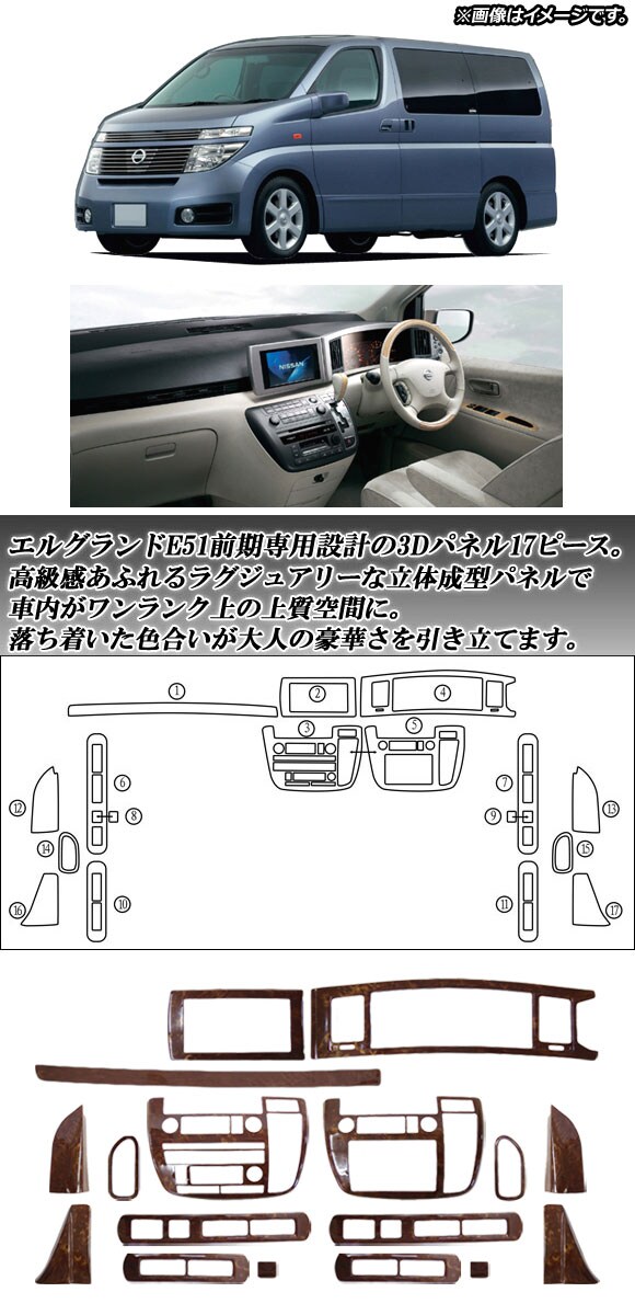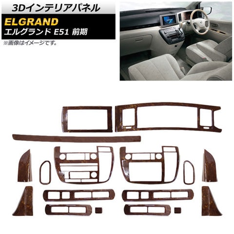 3Dインテリアパネル ニッサン エルグランド E51 前期 2002年05月~2004年07月 茶木目 AP-3D-ELG02-BRWD 入数:1セット(17個)