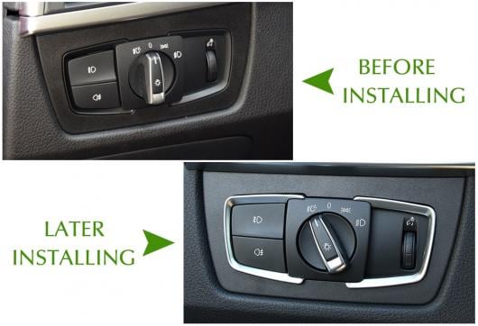 2ピースセット ヘッドライト スイッチ フレーム トリム アジャスター サークル ステッカー 適用: BMW 3 4シリーズ X5 3GT F15 F30 F31 F32 F33 F34 F36 AL-II-1063 AL