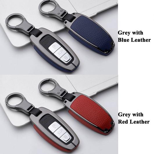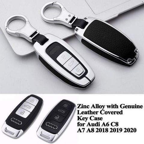 1ピース 亜鉛 合金 レザー キー ケース カバー シェル アクセサリー 適用: アウディ/AUDI A6 C8 A7 A8 2018 2019 2020 シルバー ブラック~グレー ブルー AL-II-1166 AL