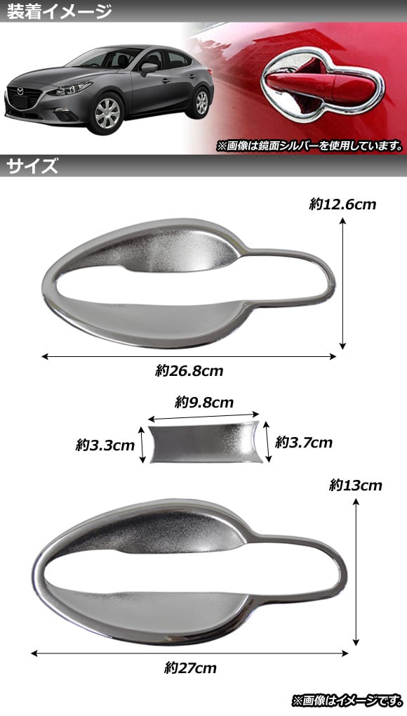 ドアハンドルインナーカバー マツダ アクセラスポーツ/セダン/ハイブリッド BM/BY系 2013年11月~2016年 シルバー ABS シボ加工 入数:1セット(8個) AP-XT507