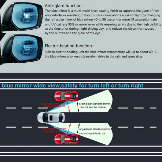 ブルー ウイング ミラー ガラス ベース ヒーテッド アングル ワイド グレア プルーフ ミラー 適用: トヨタ ハイラックス 2008-09 フォーチュナ 2008-13 ハイランダー 2009-2014 AL-II-1449 AL