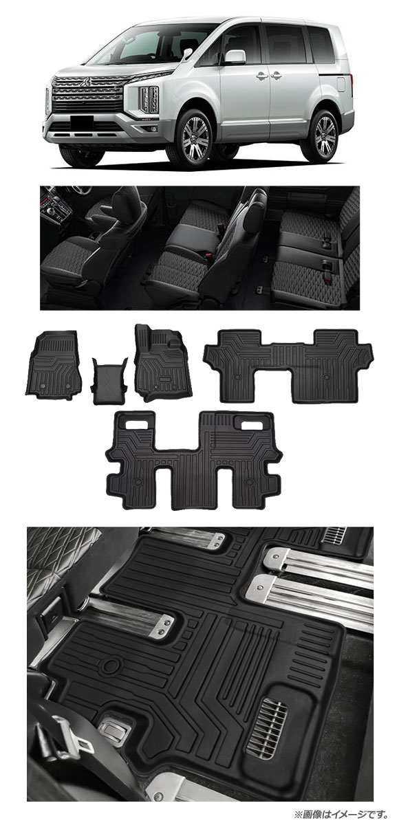 フロアマット 三菱 デリカD:5 CV系 前期/後期 8人乗り/リアヒーター有り車用 2019年02月~ TPE素材 立体構造 防水仕様 AP-IT774