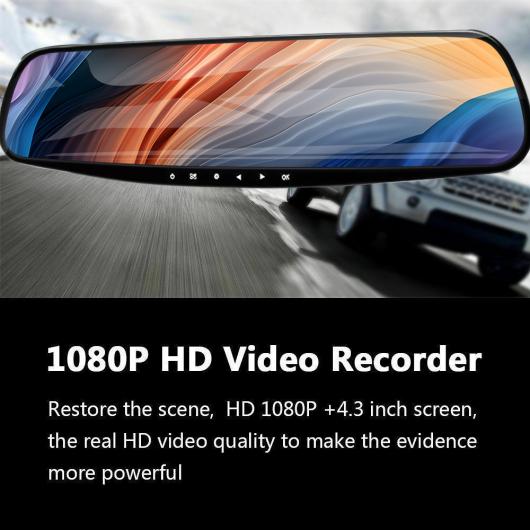 バックミラー ミラー DVR カメラ 4.3inch LCD スクリーン フル HD 1080P ナイト ビジョン ドライビング レコーダー デュアル レンズ デュアル レンズ SD8G AL-II-2088 AL