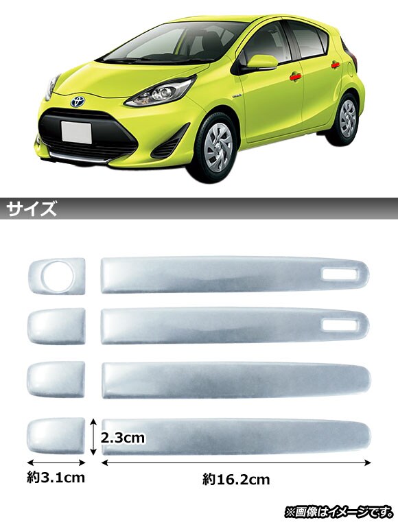 ドアハンドルカバー トヨタ アクア NHP10 2011年12月~ 鏡面シルバー ステンレス製 ハーフタイプ 入数:1セット(8個) AP-XT518-KSI