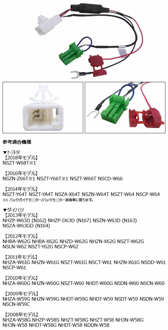 純正ナビを新しい社外ナビに交換し、バックカメラは今まで使用していた物を使用したい場合に便利な商品です。