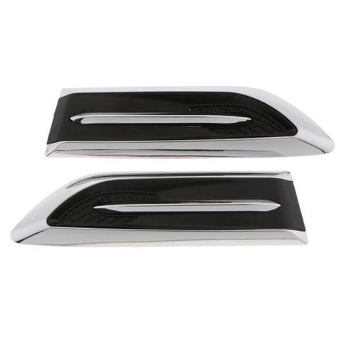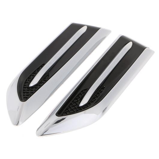 2ピース クロームメッキ 3D サメエラ風 サイド ダミーダクトトリム セット フェイク 通気口 フロー ステッカー デカール AL-II-2427 AL