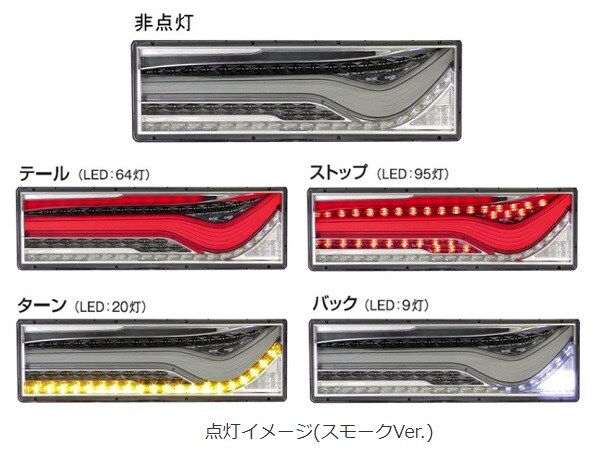 小糸製作所/KOITO トラック用オールLEDリアコンビネーションランプ スモークVer 24V 左側 歌舞伎デザイン 入数:1個 LEDRCL-24LSKC